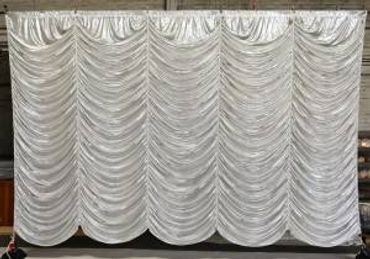 The Austrian curtain or Austrian drape, also called a puff curtain and usually has nylon lines distributed evenly across the length of the fabric (often a thin satin, charmeuse, or chiffon material that bunches up well). Each of these lines runs through a pulley at the top of the curtain and then over to ahead block. From there, they each lead and down to a mechanical winch necessary to raise the curtain (which is much too heavy for one person to raise). As the winch turns and curtain rises, it is collected in a series of swags accentuated by horizontal pleats called festoons sown into the curtain from top to bottom. In this sense, it has both vertical and horizontal fullness. Austrian curtains reached their height of popularity in the mid twentieth century. They are visually very aesthetic, require little fly space overhead, and are relatively simple to operate as long as the winch can bear the load. However, they are very complex to rig and are the most expensive kind of curtain to construct. If you require lines for the pulley system, please enquire for a quote.